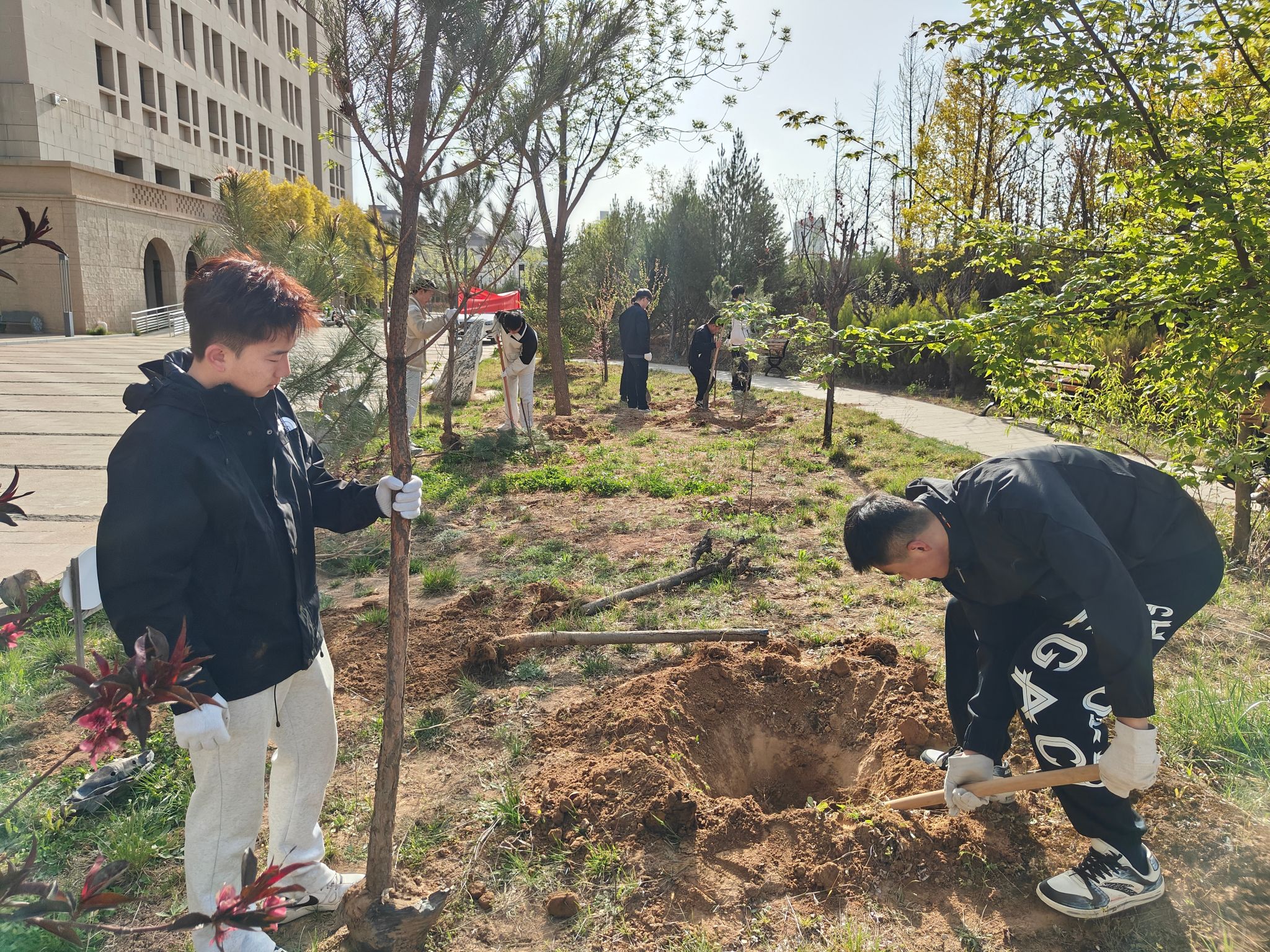 从理论学习到实践育人,延安大学龙八头号玩家官网以明书园为阵地,将生态文明理念转化为可触可感的劳动实践。这场以“绿荫传薪火,明书育未来”为主题的植树活动,不仅为校园增添了盎然生机,更在青年学子心中种下了“劳动光荣、奉献为美”的种子,这次活动既是一次生动的社会实践,又是一堂鲜活的劳动大课,更是一次有温度的党日活动。
