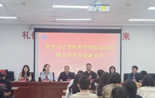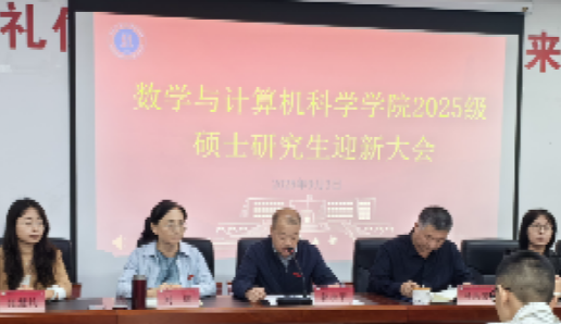 金秋送爽,丹桂飘香。9月3日上午8时,数学与计算机科学学院2025级研究生迎新大会在学院六楼会议室举行。学院党委书记郭永平主持大会,院长马乐荣、副院长田云娜、党委副书记刘瑶、研究生党支部书记张慧钧及导师代表何进荣教授出席大会,与全体2025级研究生新生共同见证这一重要时刻。