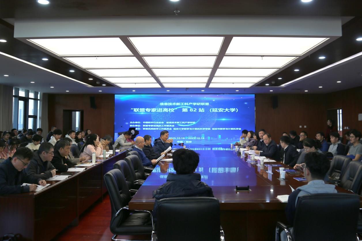 2025年10月19日,“联盟专家进高校”系列活动第82站——延安大学专场会议顺利举办。延安大学副校长付峰参加开幕式并致辞。会议特邀国防科技大学王志英教授和毛新军教授、华中科技大学秦磊华教授以及湖南大学边耐政教授作专题报告。数学与计算机科学学院院长马乐荣主持会议。