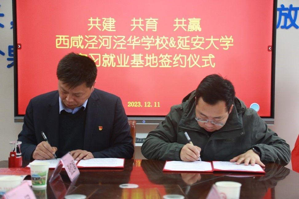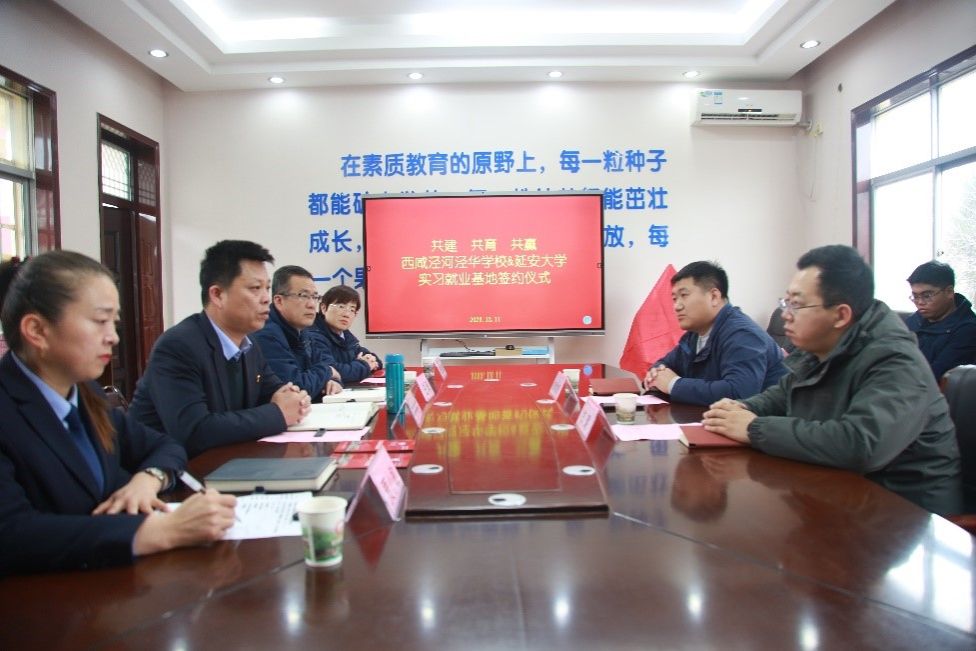 12月11日,龙八头号玩家官网前往西咸泾河泾华学校进行座谈,西咸泾河泾华学校党支部书记、校长张争航、高中部校长王闻、小学部校长张红娟、各学部教务主任和延安大学校友代表共计20余人出席本次活动,活动由初中部校长贾晓敏主持,会上,双方就学生培养、实习、校园招聘等内容进行深入交流,签订了毕业生实习就业基地合作协议并揭牌。泾华学校高中部数学教师左港旋代表延大校友发言,表示要将延安精神带至泾华学校工作学习的每一天,做好立德树人、教书育人的本职工作。同时韩浩亮老师代表学院向用人单位赠送了《延安大学校史》《平凡的世界》等书籍。
