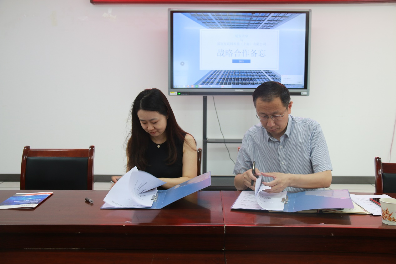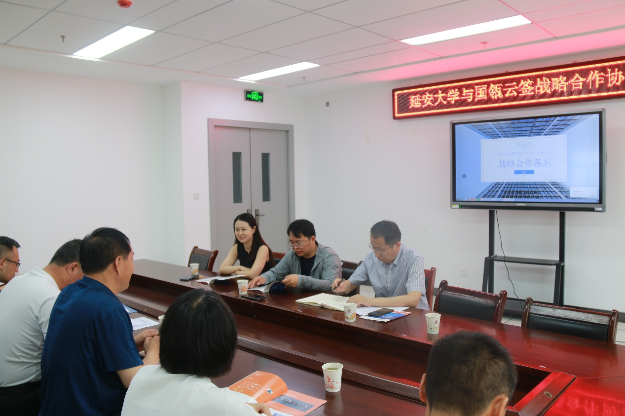 2021年7月2日上午,国瓴互联网科技(上海)有限公司与延安大学战略合作协议签字仪式在延安大学新校区信息大厦6楼数计学院会议室举行,出席签字仪式的有国瓴互联网科技(上海)有限公司-国瓴云签CEO吴玥姝女士、延安大学科研处处长王延峰教授、龙八头号玩家官网副院长马乐荣教授 、数计学院刘翼副院长、龙八头号玩家官网专业负责人田云娜、何进荣、田原和数国瓴云签系统维护的学生代表李鹏翼等30多人,仪式由数计学院院长王文发教授主持。