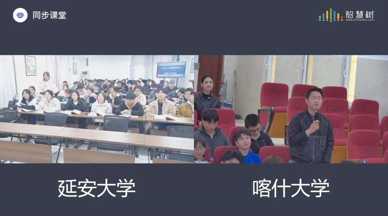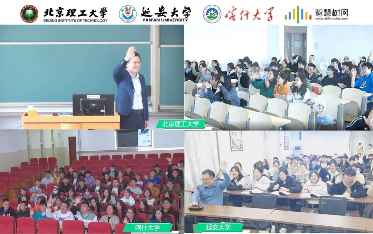本次同步课堂首次实现了三校师生的云端同窗。北京理工大学、延安大学和喀什大学的同学们跨越千里的山水阻隔,借助智慧树平台进入课堂远程互动,在这种新颖的教学技术辅助下,如同身临现场,参与到同一堂课程教学中来,现场实时交流、积极互动,气氛十分热烈。学生们纷纷表示:这样的授课方式新颖、有趣、生动,提高了对专业学习的自信,希望以后能有更多这样的机会和不同院校的学生老师交流。
