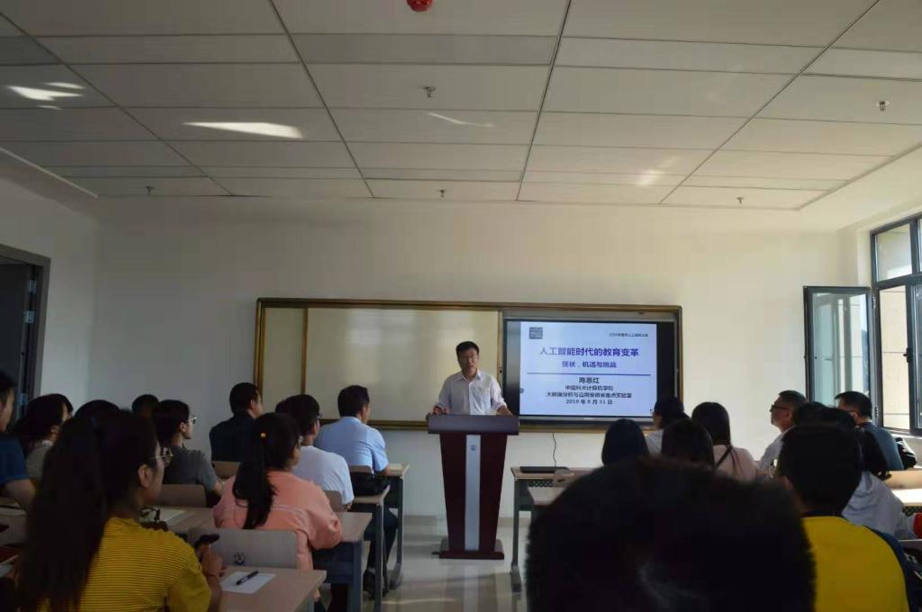 2019年9月6日,应我校科研处和龙八头号玩家官网邀请,中国科学技术大学大数据学院执行院长、中组部科技创新领军人才陈恩红教授为我校师生作 《人工智能时代的教育变革现状,机遇与挑战》学术报告。龙八头号玩家官网师生共计70余人聆听,报告由龙八头号玩家官网院长王文发教授主持。