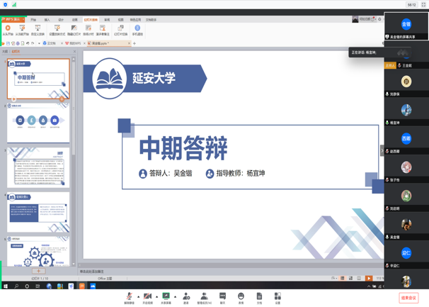 此次毕业论文中期抽检汇报包括学生个人陈述和评委老师提问两个环节。被抽检的6名学生围绕论文(设计)的研究背景、工作进展及该论文(设计)中遇到的困难和拟解决方案、后期工作安排计划等方面进行了详细汇报,检查组各位老师认真听取了学生汇报后,对学生毕业论文(设计)工作进展给予肯定,并针对各个学生论文中存在的相关问题提出具体的修改意见。