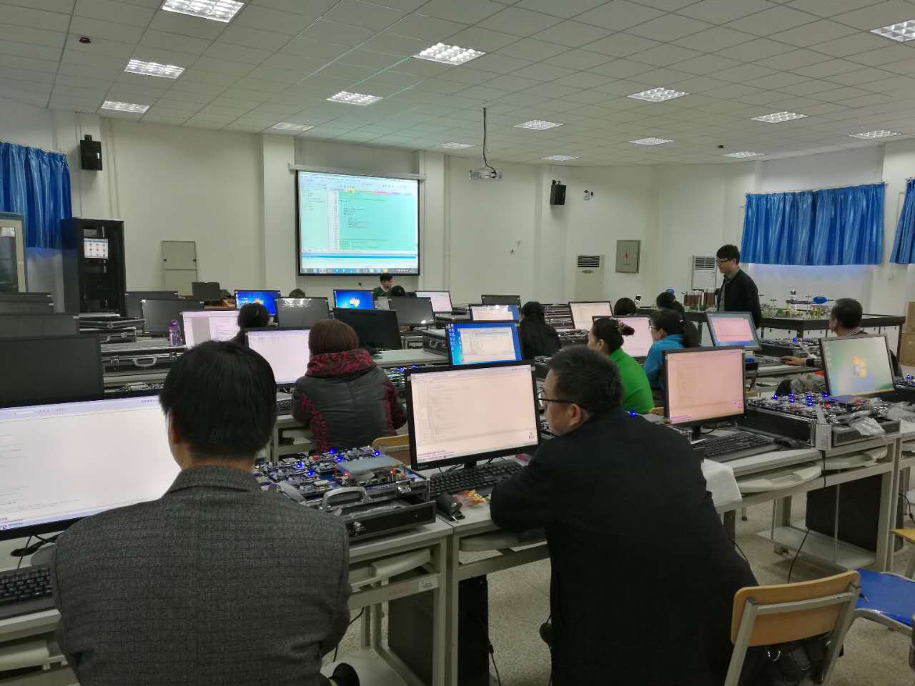 我院2016年立项建立的物联网工程基础实验室于3月6日-3月8日进行试验设备使用培训,全体实验室管理人员及相关代课教师参加了此次培训。期间我院教师与培训方人员进行了深入的交流,现场气氛热烈,培训后大家颇感收获较大。