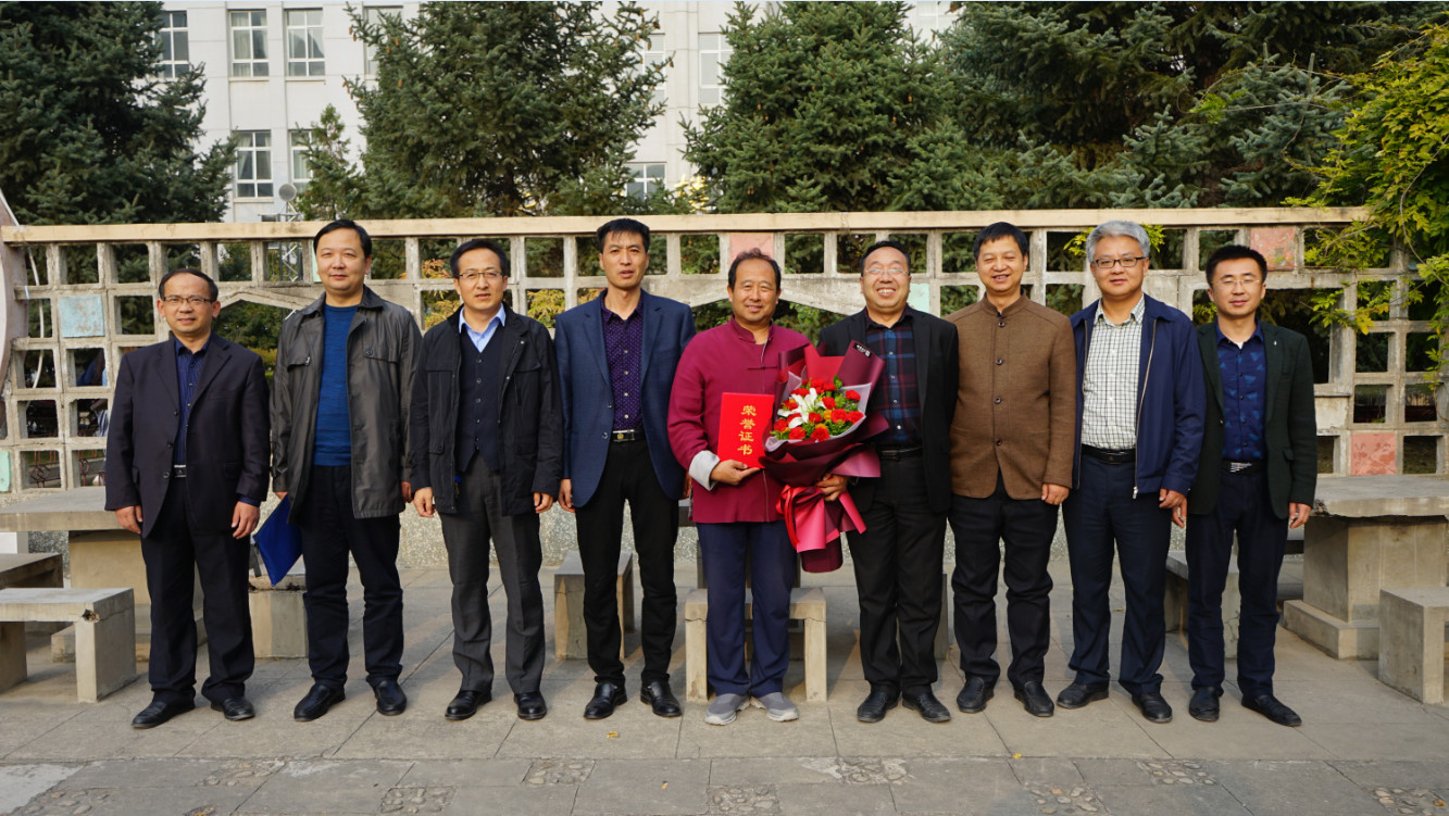 座谈会的尾声,学院领导给叶小红老师献花,颁发纪念品,并在如心楼下兰蕙园合影留念。