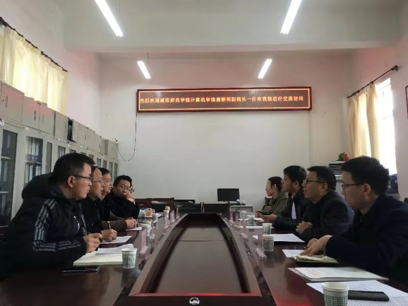 11月23日上午,咸阳师范学院计算机学院副院长郭新明一行4人来我校数学与计算机学院考察交流,数学与计算机学院副院长杨战海、计算机科学与软件工程系主任郝继升教授、副主任田云娜博士,数据科学与物联网工程系主任牛永洁副教授、副主任丁苍峰博士等参加了座谈会。