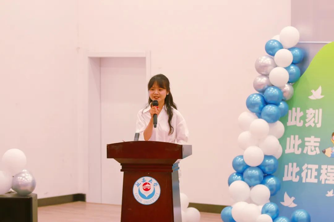 开场的毕业视频回顾了学子们教室钻研、校园漫步、军训流汗等成长片段,拉开活动序幕。院长马乐荣致辞,话语间满是深切叮咛。他叮嘱毕业生们常怀感恩之心,把父母的养育、师长的教诲、同学的陪伴皆藏于心,用实干回报家人与社会。更激励大家拒绝“躺平”,主动激活内驱力,在未来的路上以进取姿态迎接挑战,在奋斗中锚定人生价值。毕业生代表汪茹茹分享了自己从憧憬大学到披荆斩棘考上延大研究生的逐梦历程。奋斗的汗、收获的甜、跌倒后再站起的韧性,都成了青春最鲜活的注脚,默默激励着每一位数计追光者。