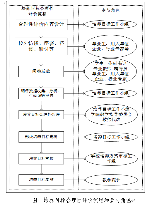 图1给出培养目标合理性评价流程和参与角色。