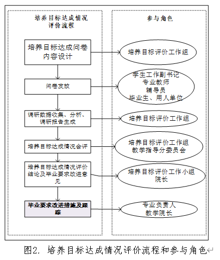 图2为培养目标达成情况评价流程和参与角色图。